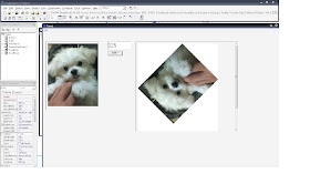 此程式要將先前第一個程式所顯示的圖片,做旋轉的動作,將圖片要旋轉的角度除以360,在利用SIN與COS來做轉動圖片的技巧,然後將整張圖片重新掃過一次,但在旋轉的時候,發現圖片會被框架減掉,後來將將Autosize調整為true後,圖片的框架就可以移動,使得整張圖片都可以看的到而不會被減掉。